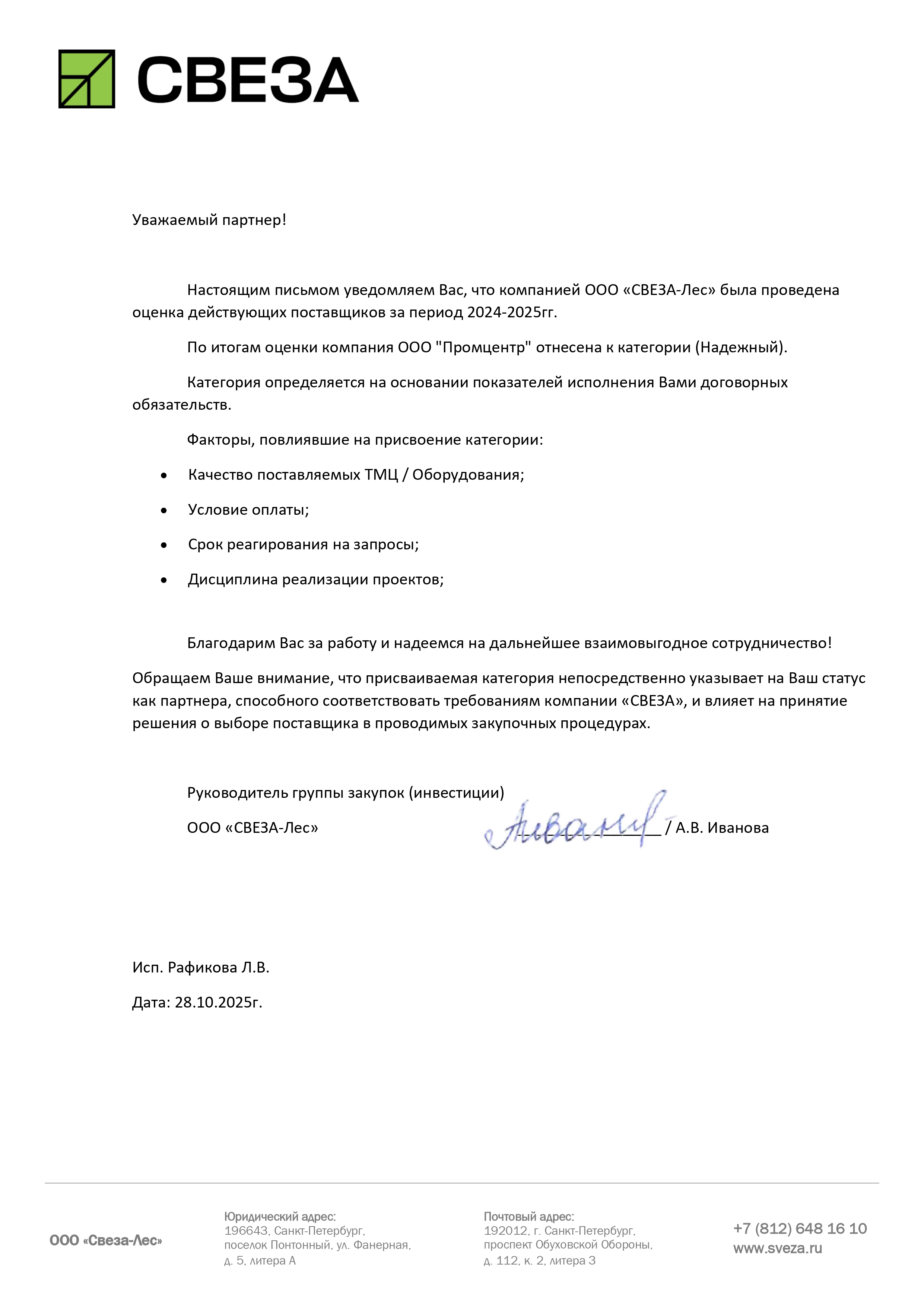 За свою долгую историю мы всегда стараемся следовать принципу поставки в срок качественной продукции. И нам очень приятно, когда такие крупные игроки на рынке фанеры как группа компаний СВЕЗА дают высокую оценку нашим стараниям. Мы и дальше будем продолжать держать высокую планку и находить индивидуальный подход к каждому клиенту.